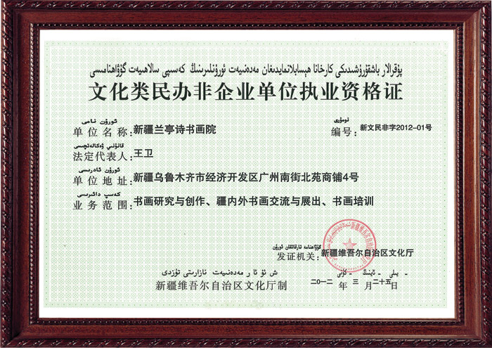 民办非企业单位登记证书